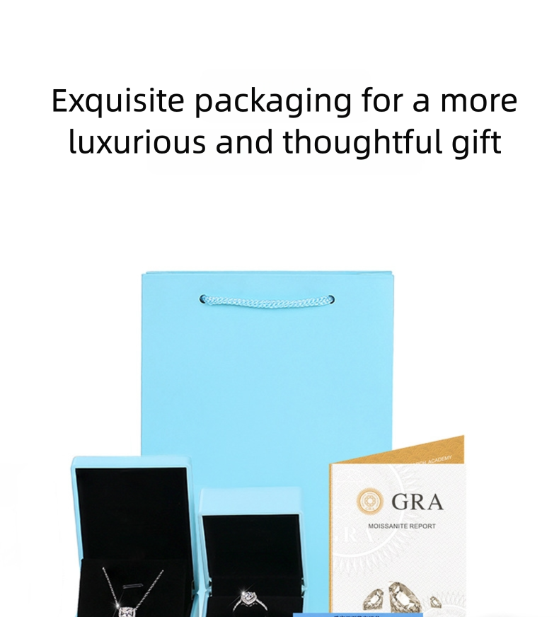 Answer 2: The moissanite used is high-grade with a D–E color rating (colorless) and VVS clarity, offering exceptional fire and a brilliant sparkle that closely mimics a high-end diamond. It provides a luxury aesthetic and diamond-like durability at a more accessible price point.